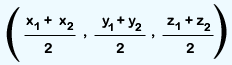 空间中两点P1(x1,y1,z1)、P2(x2,y2,z2),中点P坐标[(x1+x2)/2,(y1+y2)/2,(z1+z2)/2