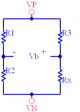 VB= Vin*[Rx/(R3+Rx)- R2/(R1+R2)]